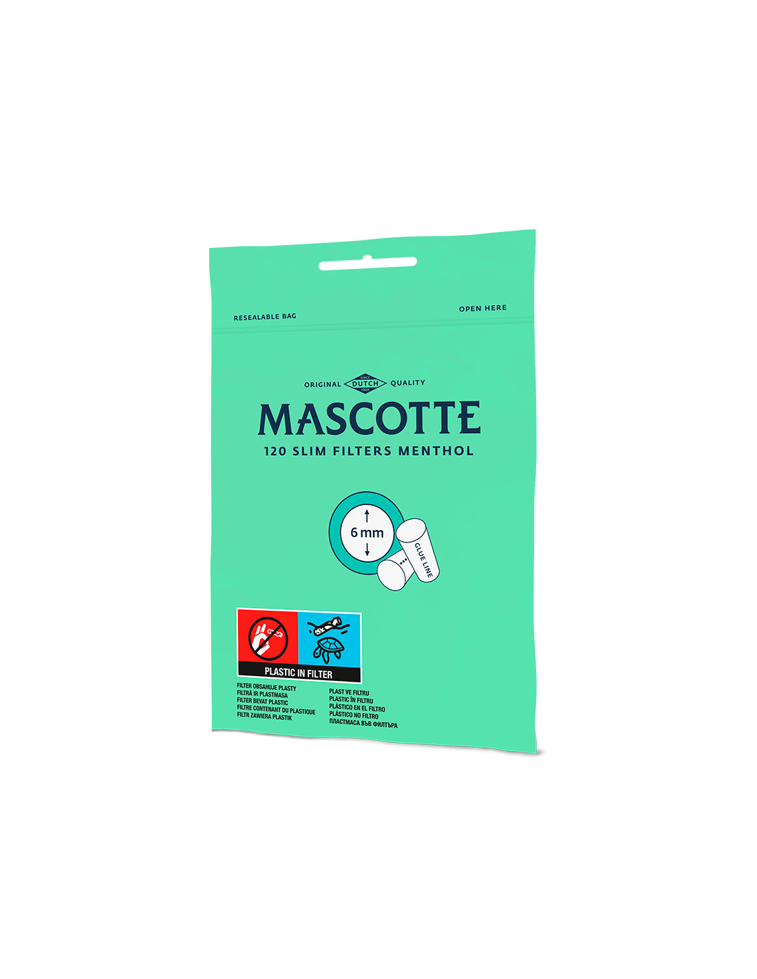 Filtros MASCOTTE Slim 6 mm. Mentol 120 uds. – Expositor con 20 bolsas