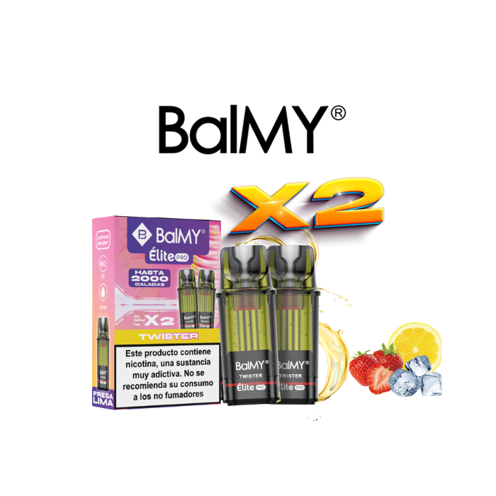Cápsulas rellenas BalMY Élite PRO 1000 puffs 20mg/ml nicotina (2 x 1 uds/pack) – Twister (Fresa y Lima)